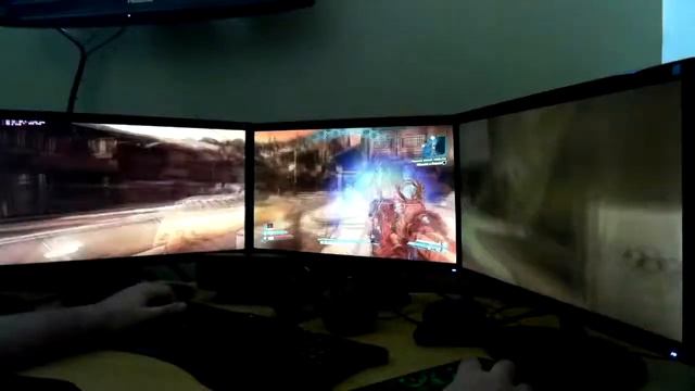 Jugando Borderlands 2 Eyefinity 5760x1080 Si les ha gustado el video no olviden ayudarme con un like! Saludos! Hardware Asus X79 Rampague IV I7-3820 16G Corsair Dominator 1866Mhz CF 7950 3G Gigabyte SSD Ocz Agility 4 120G (OS) SSD Sandisk 240G (Online Games) WD Green 2TB 5200rpm PSU Cooler Master Silent Pro 1200W Little Devil Cooling Case WaterCooling 1 Loop Pump MCP-655 EK Corsair Dominator Waterblocks EK CPU Waterblock EK Mobo Waterblock EK CoolStream 480 Rad + 8 Fans Corsair EK 400ml Reservoir WaterCooling 2 Loop Pump MCP-35X Waterblocks 7950 EK CoolStream 360 Rad + 6 Fans Corsair EK 250ml Reservoir Accesories EK 7950 Backplates x2 Catodo Reds Leds Reds Lamptron FC9 Sound Blaster Recon 3D Fatality