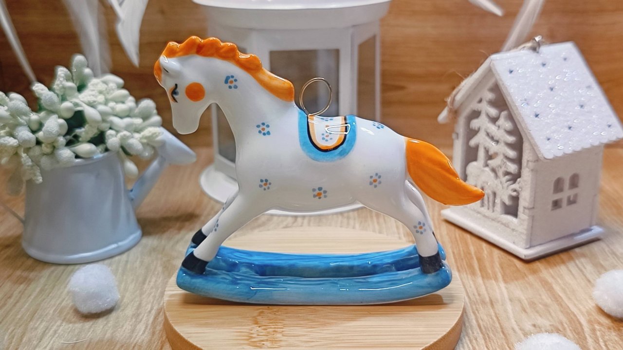 Ёлочная игрушка "Лошадка – качалка оранжевая", гжельский фарфор