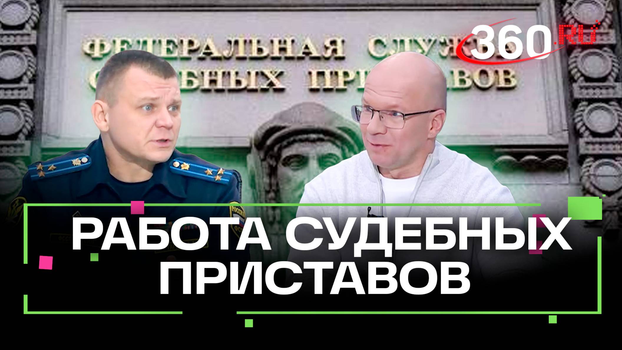 Давать в долг? Сначала проверьте! Главное правило от главы ФССП Подмосковья Андрея Тагаева: как не потерять деньги и нервы. В интервью обсудили: • Как узнать долги по кредитам и ЖКХ? • Какие запреты ждут должников в 2025? • Федеральный реестр алиментщиков: попали — что делать? Подписывайтесь на соцсети Телеканала 360 — свежие выпуски о жизни Подмосковья! 00:25 — Судебные приставы в России: с чего всё началось 02:55 — Работа судебных приставов сегодня 04:26 — Как узнать всё о ходе исполнительного производства 06:43 — Искусственный интеллект в работе судебных приставов 08:50 — Какие задачи ложатся на подмосковных приставов 12:00 — Реестр должников: что изменилось для алиментщиков в 2025 году 13:56 — Профессиональный праздник судебных приставов