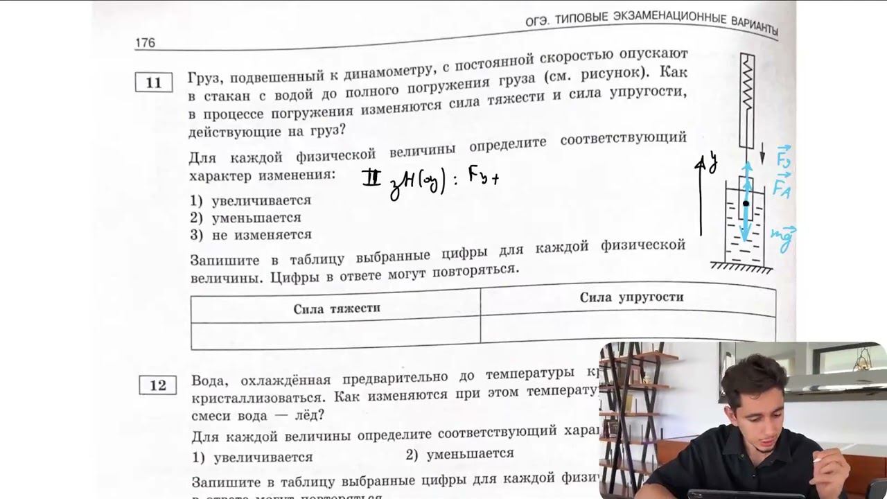 Груз, подвешенный к динамометру, с постоянной скоростью опускают в стакан с водой до - №28282