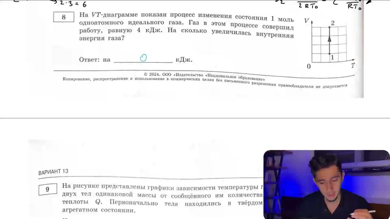 На VТ-диаграмме показан процесс изменения состояния 1 моль одноатомного идеального газа. Газ в - №