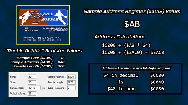 Examination of one sound channel of the NES - the DMC. Analog to digital conversion, PCM, and DPCM are covered. If you would like to support this channel, here is a link to the Displaced Gamers Patreon page - https://www.patreon.com/displacedgamers Twitter: https://twitter.com/DisplacedGamers Facebook: https://www.facebook.com/DisplacedGamers/ Instagram: https://www.instagram.com/displacedgamers/ Music by: https://www.youtube.com/user/HariboOSX https://www.youtube.com/channel/UC-PRsIpJXWpg3PtjfQLwiVw 0:00 Intro 1:00 What is Sound? 3:08 From Analog to Digital 5:59 PCM Explanation 7:45 PCM on the NES 10:15 Raw PCM on Register $4011 11:21 DPCM on the NES 12:52 Dwouble Dwibble and Registers $4012 and $4013 18:37 NES DPCM Sample Rate Options 20:56 NES Speech Replacement 21:53 DPCM Instruments 23:26 Sample Length and the Off-by-one Error 26:06 Looping Samples 27:46 A DPCM ROM Modification... 28:33 Journey to Silius Bass Compare 29:56 Thoughts on Bass Change 30:46 Super C and Drums vs Orchestra Hits 32:07 DMC Shortcomings 33:10 Conclusion and Outro #NES #SOUND #SPEECH