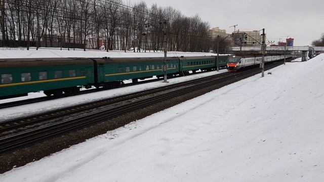 ЧС7-014 с поездом №48 Кишинёв-Москва по 3 главному и ЭП2Д-0012 по 2 главному на перегонки