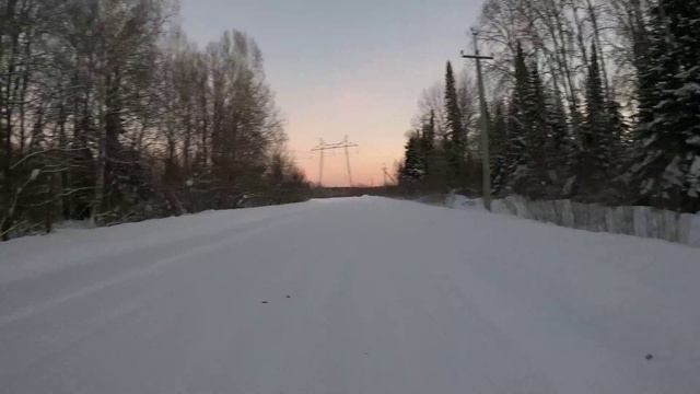 Сегодня был первый день календарной зимы, и сразу мороз, -29 градусов на старте, и на финише - 31 градус, так как попал рассвет. Всё расстояние не вошло, батарея не выдержала холода, и полтора километра остались в не виденье, но отрезок десятикилометровый был преодолён, без обморожений и проблем для здоровья.