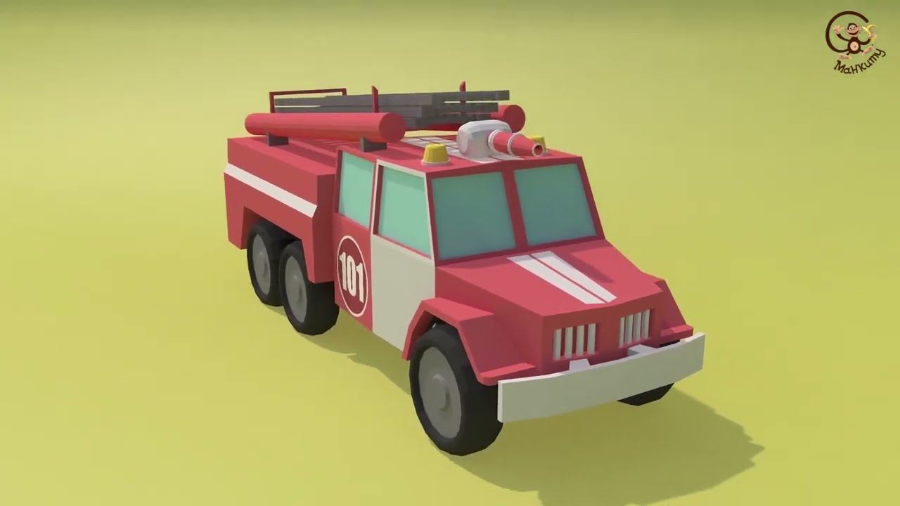 Мультик про машинки. Синий трактор, пожарная машина и желтый поезд. Манкиту