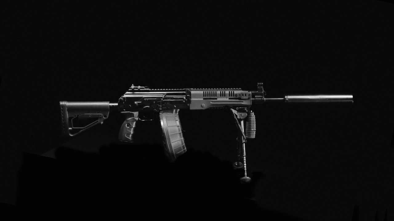 Ручной пулемет для армии и спецслужб. Общая длина - 840-900 мм Длина ствола - 415-580 мм Применяемый патрон - 5,45х39 мм Емкость магазина - 30, 45 и 95 патронов Масса - 4,5 кг