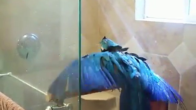 Попугай Ара принимает душ и кайфует 100