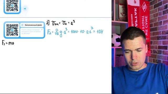 Деревянный кубик с ребром 10 см плавает частично погруженный в воду. Его начинают медленно - №23166