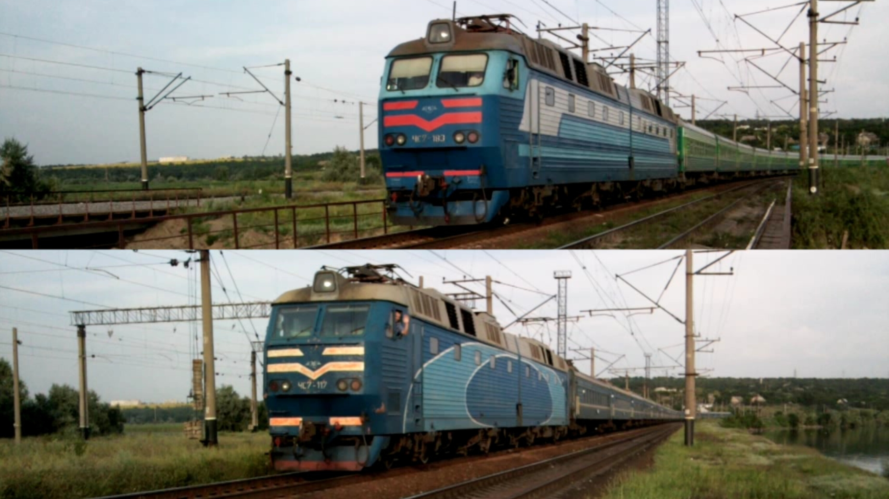станция Плавни-грузовые Приднепровская железная дорога я благодарен доброжелательным южанам крымского хода особенно помощника тут благодарю спустя многие годы) 18 июля 2010 года 0:00 - ЧС7-183 с поездом №30 Симферополь-Москва по Плавням-грузовым в 18:55 (Мск?) 0:27 - они вошли в историю ЧС7-117 волна, с поездом Симферополь-Киев по Плавням-грузовым, один из поездом Симферополь-Киев состав 20 вагонов в 19:01 (Мск?) Перегон Плавни-грузовые - Канкриновка 1:17 - ЧС7-149 с поездом №176 "Южный Экспресс" Симферополь-Харьков в 19:30 (Мск?)