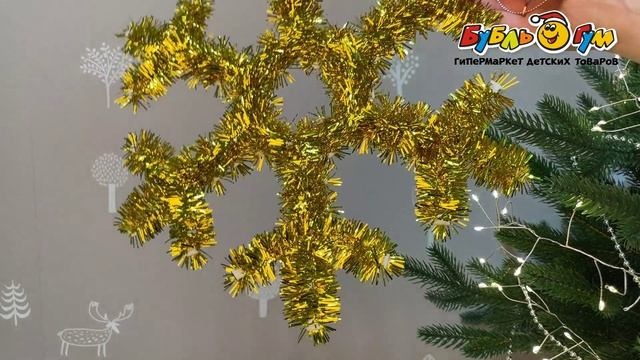 331094 Декор Снежинка из сияющей мишуры золотая 37см
