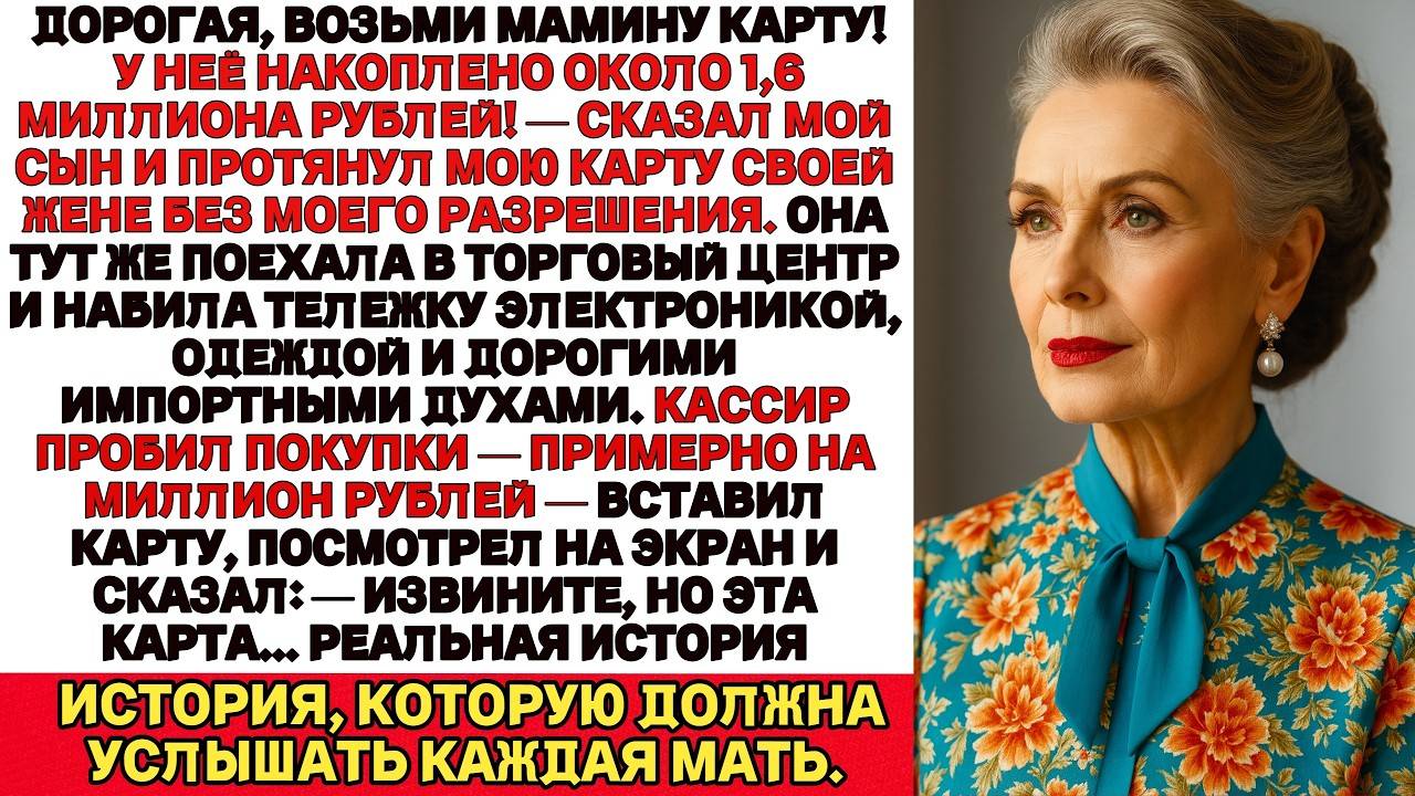 Дорогая бери мамину карту У неё на счету приличная сумма сказал мой сын передавая ей мою карту