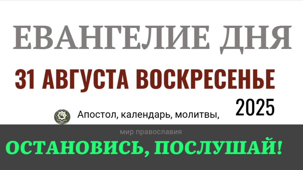 #евангелие_дня #мирправославия Поддержать: https://pay.cloudtips.ru/p/cdba2f3e кому нужно подать записки в храм https://ikoni.cerkov.ru/zapiski-v-xram/ или так Сб. 2202 2061 0335 2154 (напишите имена в сообщении, их помянут за богослужением, укажите, если инославные) юмани: https://yoomoney.ru/to/4100118162167497 можно так: https://boosty.to/mirvam/donate Молитва Оптинских старцев, молитва Богородице :www.optina.ru Наши соцсети Мы в Telegram https://t.me/Mirprav https://t.me/+Uxa0sihaHTB15lON ВКонтакте https://vk.com/clubmirprav Евангелие дня Мир Православия https://boosty.to/mirvam #Евангелие_дня #молитва_Богородице #мирправославия #православный #праздник #сегодня #2025 #какой #сегодня праздник #церковный #календарь 2025