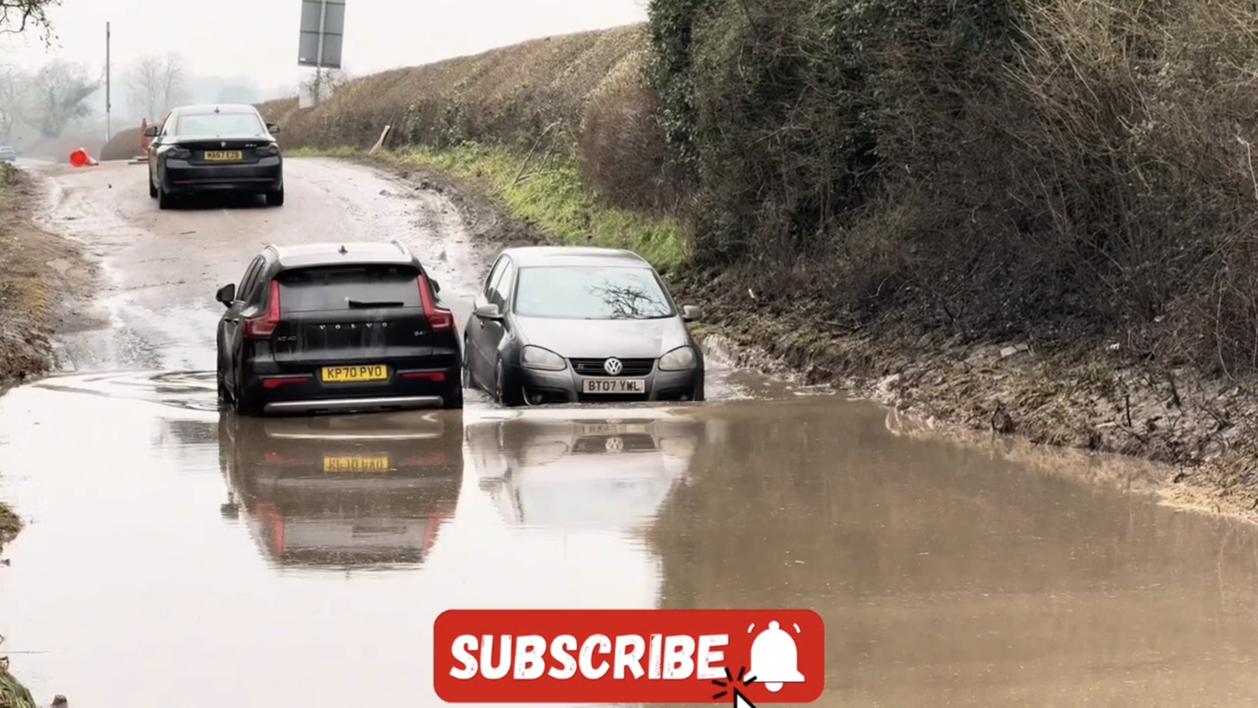 Машины едут по затопленной дороге, гидроудар