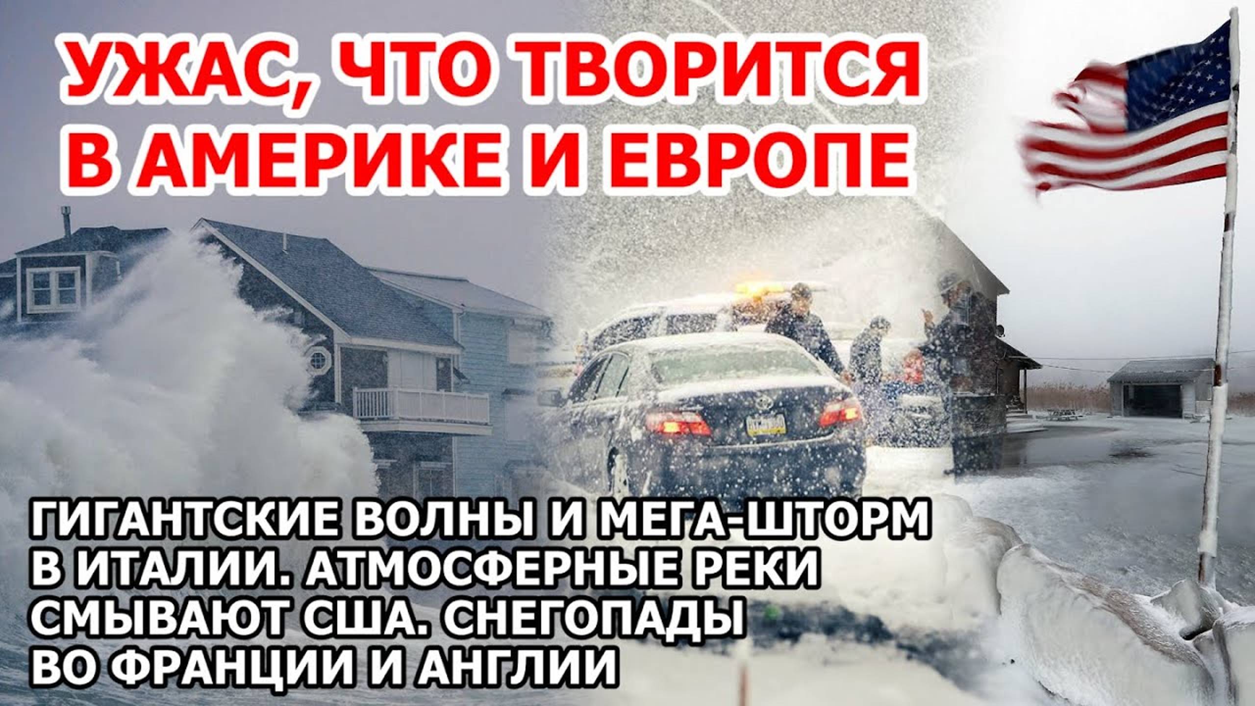 Взрыв циклон бомбы в Америке Волны шторм Италия Снег метель США Франция, Англия. Извержение Исланд
