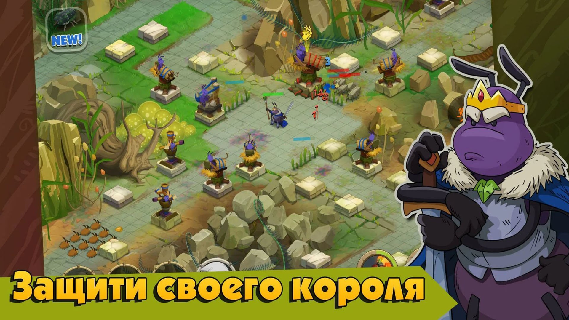 Плейлист игры - https://clck.ru/sWXrX King of Bugs – вселенная, которую мы не замечаем. Знали ли вы о существовании целого мира, который существует параллельно с нашим? Достаточно опустить взгляд вниз, и вам откроется целая вселенная, наполненная настоящими человеческими эмоциями: любовь и отвага здесь соседствуют с предательством и коварством. Это вселенная, жители которой готовы бороться за свой дом и свободу. King of Bugs – это классический Tower Defense с захватывающим сюжетом, который увлечет вас не на один вечер. Вы отправитесь в невероятное путешествие в компании короля Карла и его верных соратников. Вас ждут ожесточённые бои и тёплые встречи со старыми друзьями. Мастерство и смелость помогут вам победить противника и найти новый дом всему муравьиному королевству, а разнообразный боевой арсенал облегчит ваш нелегкий, но полный приключений путь.