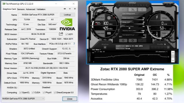 With the launch of the RTX 2080 SUPER graphics cards, we have 3 cards with us today to pit against each other. With the Gigabyte RTX 2080 SUPER Gaming OC, Palit RTX 2080 SUPER GameRock and Zotac RTX 2080 SUPER AMP Extreme, which card is the right one for you? Check our video to find out! Gigabyte RTX 2080 SUPER Gaming OC - http://bit.ly/2Y0ge32 Palit RTX 2080 SUPER GameRock - http://bit.ly/32PFaJx Zotac RTX 2080 SUPER AMP Extreme - http://bit.ly/2LF1YWS ------------------------------------------------------------------------- ►UK Links◄ Amazon.co.uk Shopping Link - http://amzn.to/2yBLok0 ------------------------------------------------------------------------- ►US Links◄ Amazon.com Shopping Link - http://amzn.to/2g4UcHH ------------------------------------------------------------------------- ►Our Kit◄ https://kit.com/eTeknix ------------------------------------------------------------------------- https://www.eteknix.com https://www.facebook.com/eteknix https://www.twitter.com/eteknix