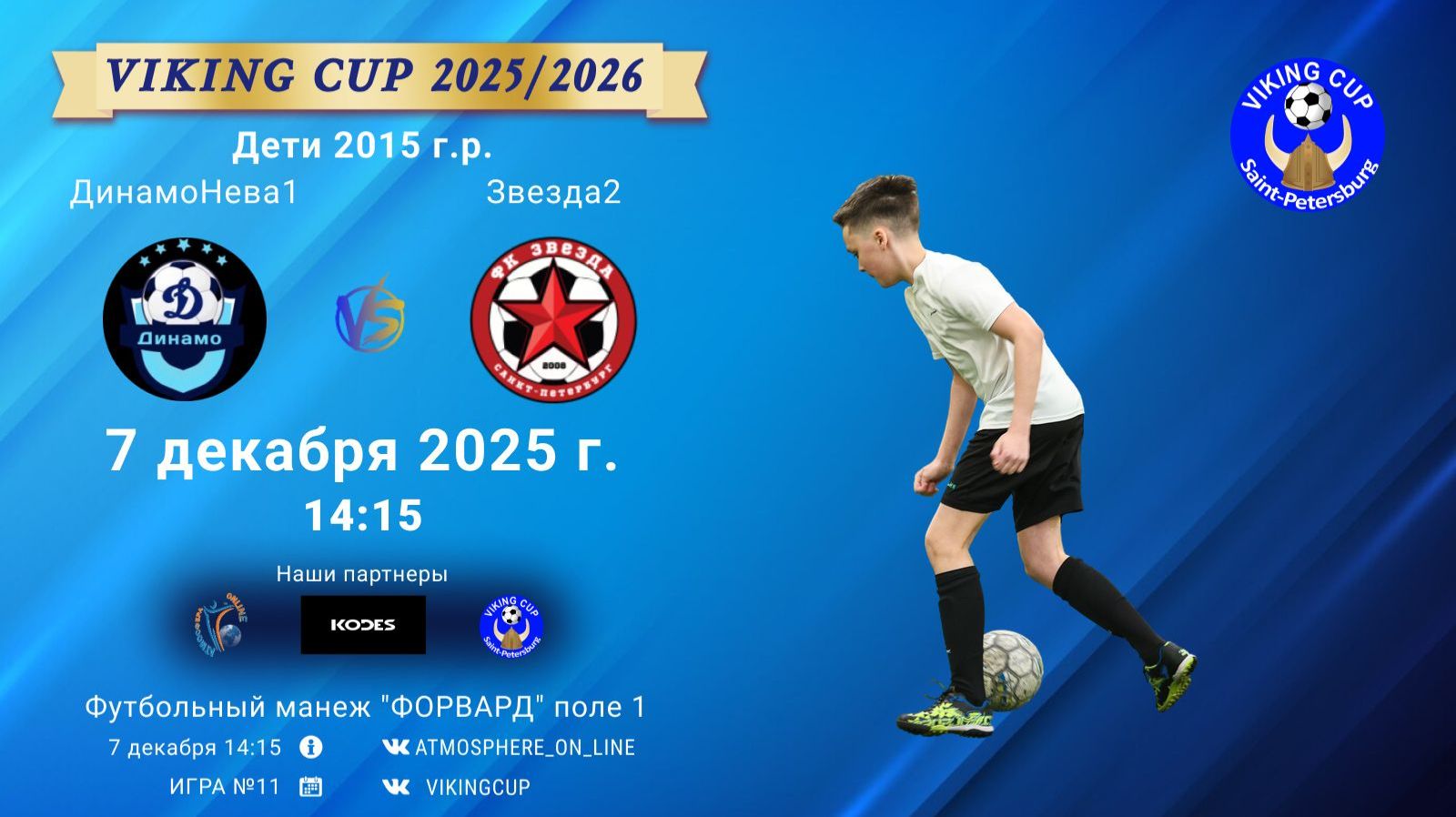 VIKING CUP среди команд 2015 г.р. (U10), Поле 1 7 декабря 2025 САНКТ-ПЕТЕРБУРГ, ФЦ "Форвард" ФК "ДинамоНева1" - ФК "Звезда2"/VIKING CUP, Игра №11, 07-12-2025 14:15