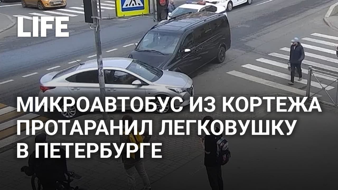 Микроавтобус из кортежа протаранил легковушку в Петербурге