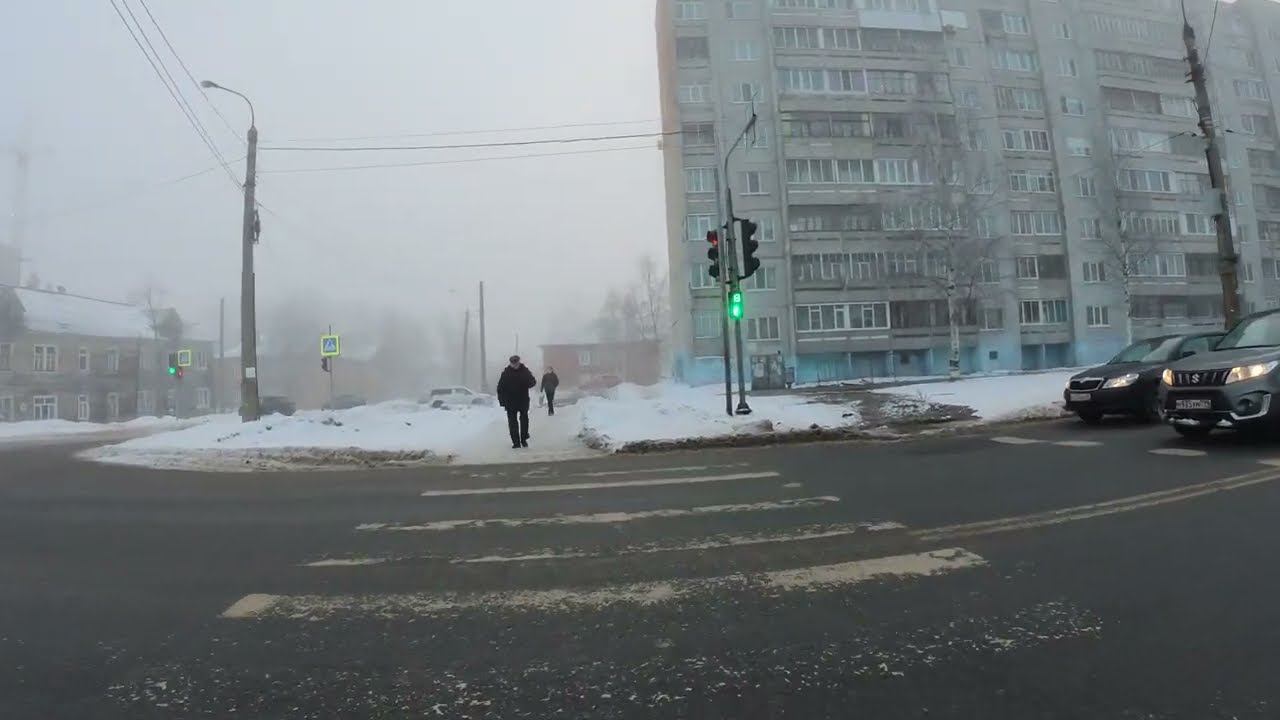 Прогулка по Архангельску. Советская полностью. Кузнечевский мост. Туман. 15.02.2023