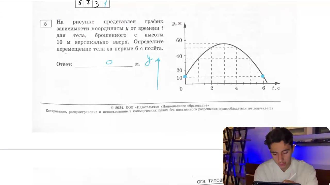 На рисунке представлен график зависимости координаты у от времени t для тела, брошенного с - №28093