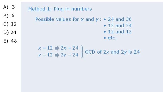 15. GMAT Practice Question: The Greatest Common Divisor of x and y is 12