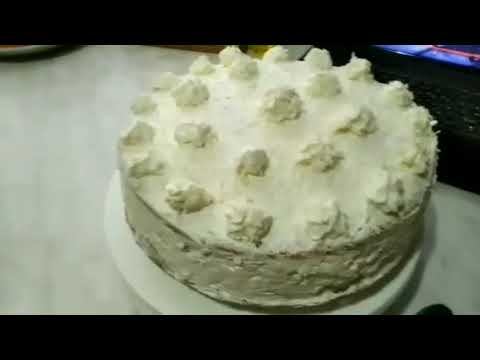 Всем привет друзья, поздравляю всех с Наступающим новым годом. Бисквит: 5яиц с1, 160гр.сахара,120гр.муки,40гр.кукурузного крахмала, 1ч.лоюка ванильного сахара. Кокосовый крем: 450мл.молока,170гр.сахара,30гр.муки,30гр.крахмала,100гр.кокосовой стружки, 100гр.сгущеного молока, 250гр.сливочного масла. Пропитка бисквитный коржей: 200мл.горячей воды, 3ст.ложки сгущеного молока. Миндаль в шоколаде : 50гр.миндаль,50гр.белый шоколад. Выпекать при температуре 180градусов,40-45мин.