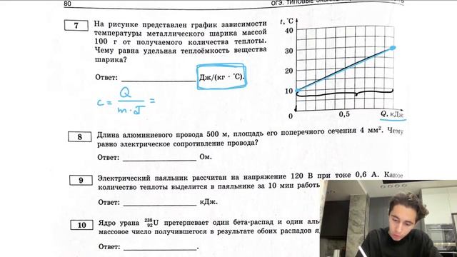 На рисунке представлен график зависимости температуры металлического шарика массой 100 г от - №27715