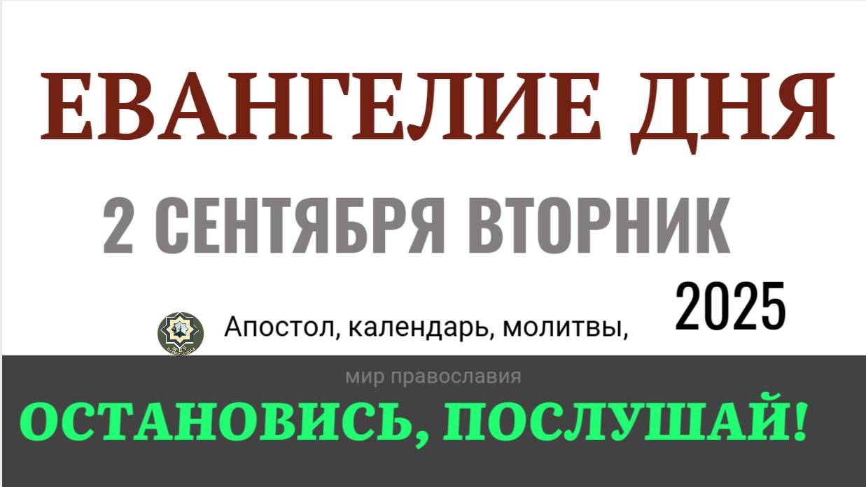 #евангелие_дня #мирправославия Поддержать: https://pay.cloudtips.ru/p/cdba2f3e кому нужно подать записки в храм https://ikoni.cerkov.ru/zapiski-v-xram/ или так Сб. 2202 2061 0335 2154 (напишите имена в сообщении, их помянут за богослужением, укажите, если инославные) юмани: https://yoomoney.ru/to/4100118162167497 можно так: https://boosty.to/mirvam/donate Молитва Оптинских старцев, молитва Богородице :www.optina.ru Наши соцсети Мы в Telegram https://t.me/Mirprav https://t.me/+Uxa0sihaHTB15lON ВКонтакте https://vk.com/clubmirprav Евангелие дня Мир Православия https://boosty.to/mirvam #Евангелие_дня #молитва_Богородице #мирправославия #православный #праздник #сегодня #2025 #какой #сегодня праздник #церковный #календарь 2025