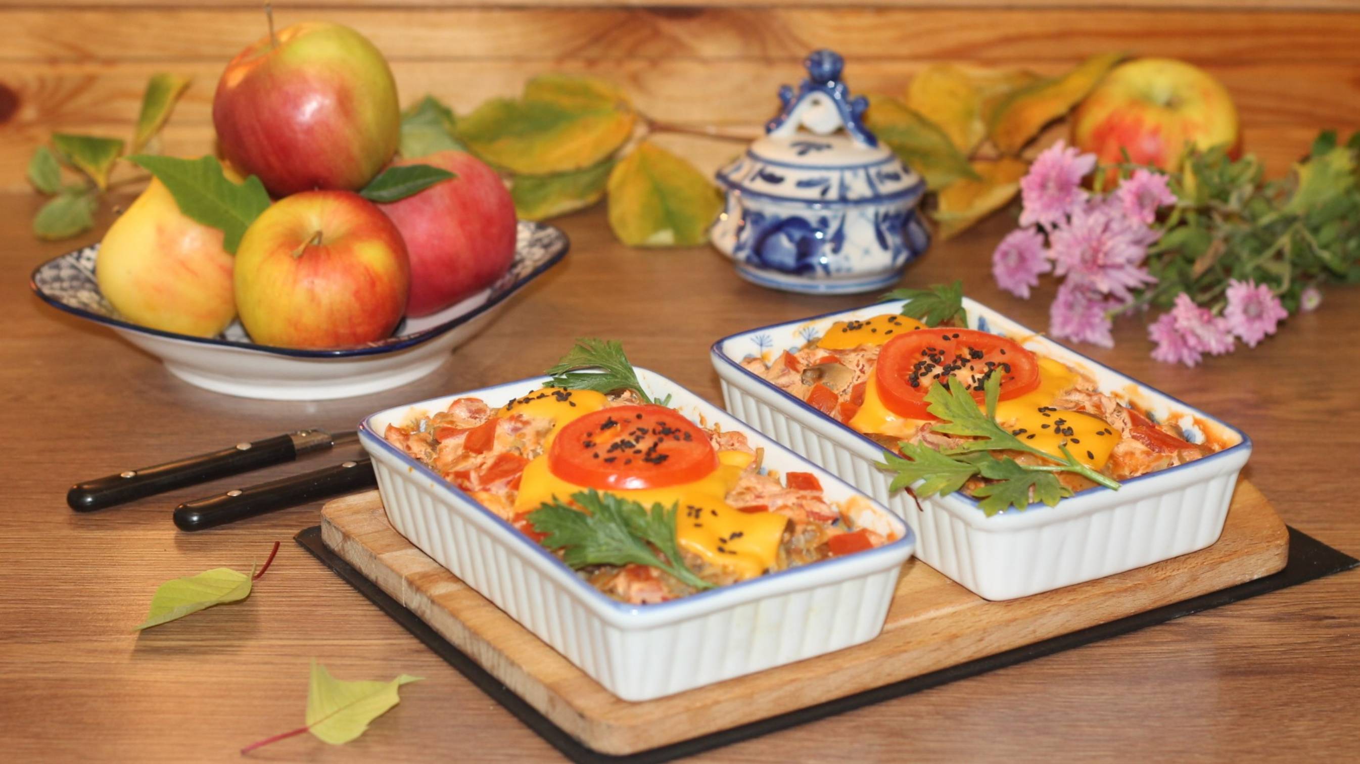 Это ещё один вкусный вариант мяса по-французски, но без майонеза. - Ингредиенты для «Маринованное мясо с картофелем и грибами»: Мясо (филе, свинина) — 200 г Картофель (4-5 шт) — 500 г Шампиньоны — 100 г Лук репчатый (1-2 шт) — 100 г Сметана (жир. 15-20%) — 3 ст. л. Сыр плавленый (или 3 пластины) — 30 г Помидор — 120 г Морковь (небольшая) — 50 г Чеснок — 3 зуб. Приправа (для мяса 0.5 ч.л. и для картофеля 0,5 ч.л.) — 1 ч. л. Томатная паста (или томатный кетчуп 2 ст.л.) — 1 ст. л. Перец черный Соль Время приготовления: 100 минут Количество порций: 2