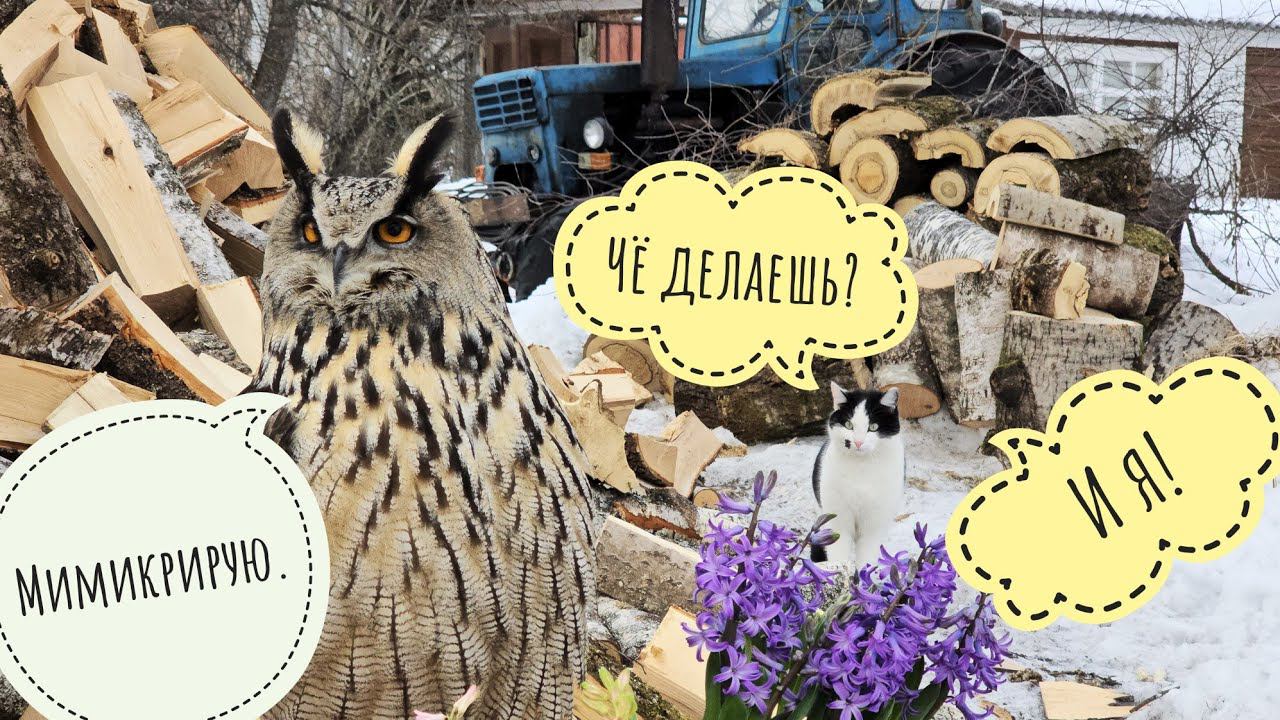 Наконец-то! Мы это сделали! К сожалению, мы не успели провести съёмку к 8 марта, потому что Артём привёз гиацинты 7го, и они были ещё в бутонах без намёка на цветение. А завтра они бы уже начали отцветать. Сегодня обещали -2°C, но на солнышке припекло, и стало можно вынести цветы на улицу без риска их заморозить. Сова Филин Ёль, кажется, даже получала удовольствие от происходящего. Ей понравились и цветы и трактор. И съёмка получилась уникальная. Всю эту кучу дров наколола моя мама своими руками, и скоро куча будет убрана на просушку под крышу. И трактор Т-40, который старше меня раза в два, тоже стоит там временно. Ещё и кот Бонифаций пришёл поучаствовать в мероприятии. А собак мы не позвали, Её Угуейшество не велели. #owlhouse #russianwinter #cuteowl
