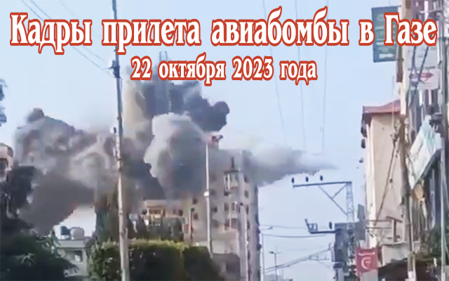 Кадры прилета авиабомбы в Газе. 22 октября 2023 года.