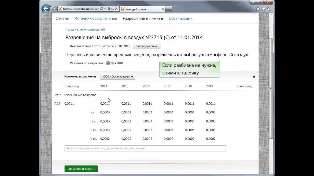 Расчет платы за НВОС с лимитами