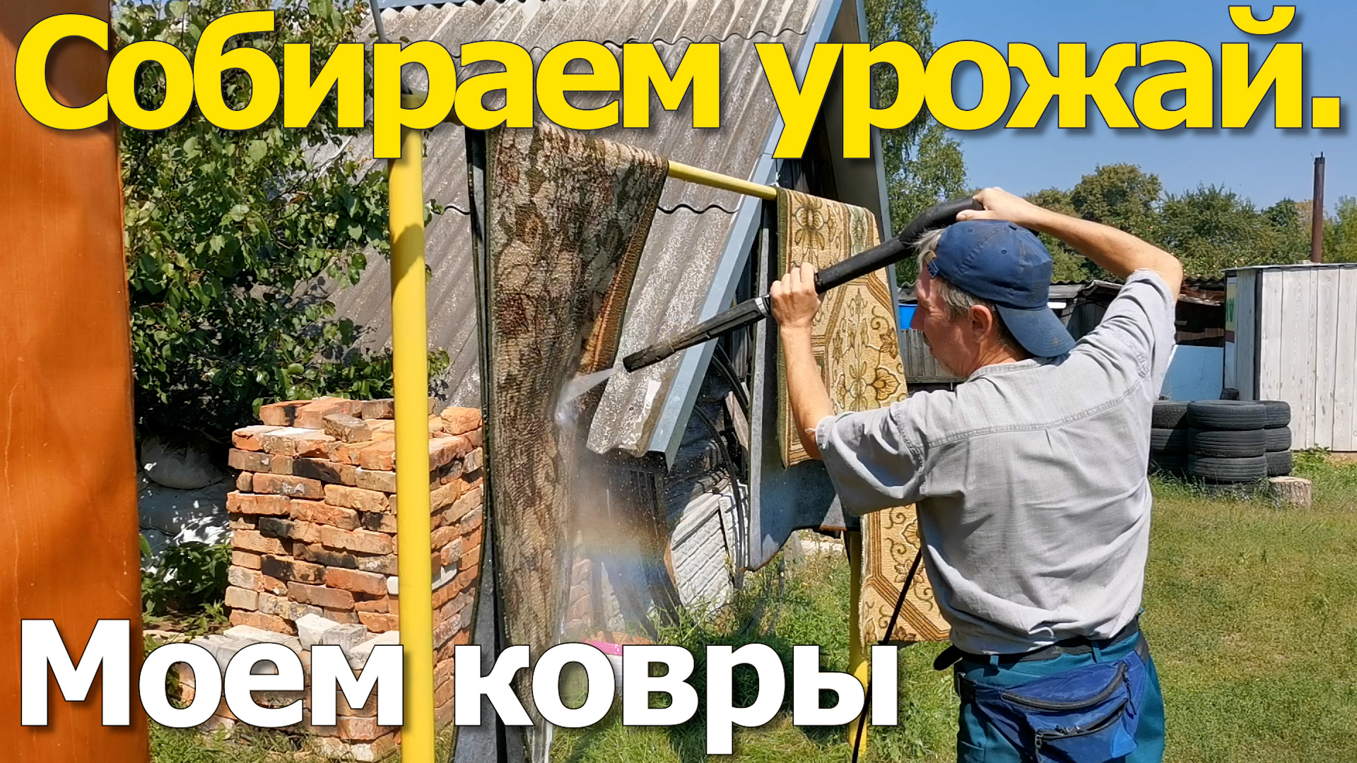 Собираем огурцы, загородка для индюков, моем ковры Кёрхером.