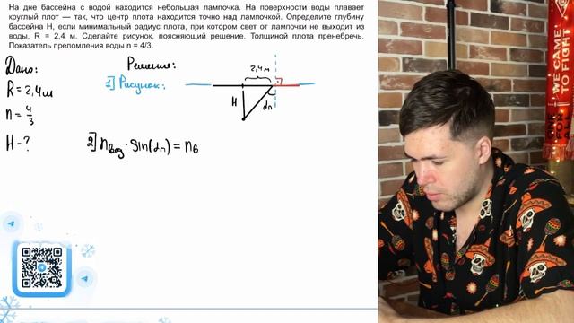 На дне бассейна с водой находится небольшая лампочка. На поверхности воды плавает круглый - №21519