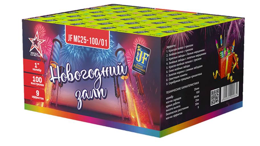 Фейерверк JF MC25-100/01 Новогодний залп 100 залпов, калибр 1"