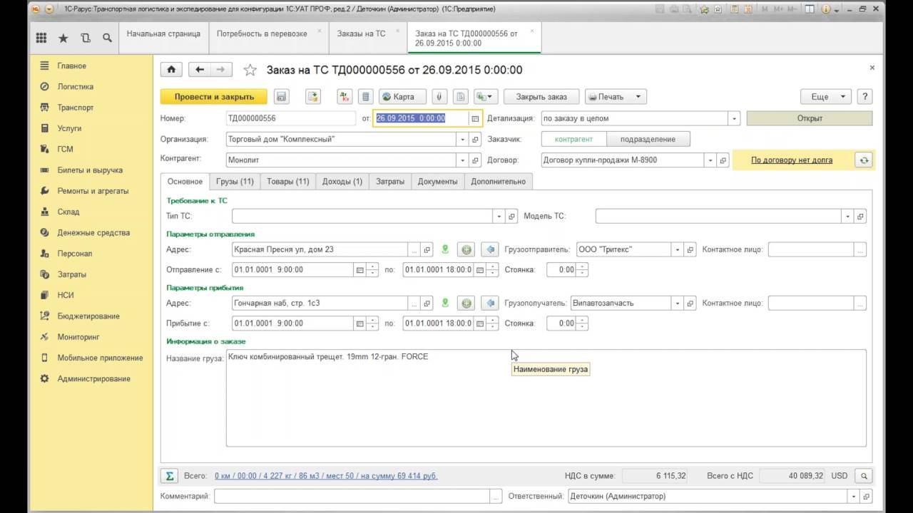 Новая редакция «1С-Рарус:Транспортная логистика и экспедирование»