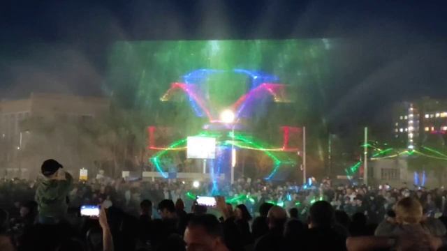 Сегодня вечером в сквере на пересечении ул. Ленинградской и Чкалова прошло лазерное шоу с новым прое