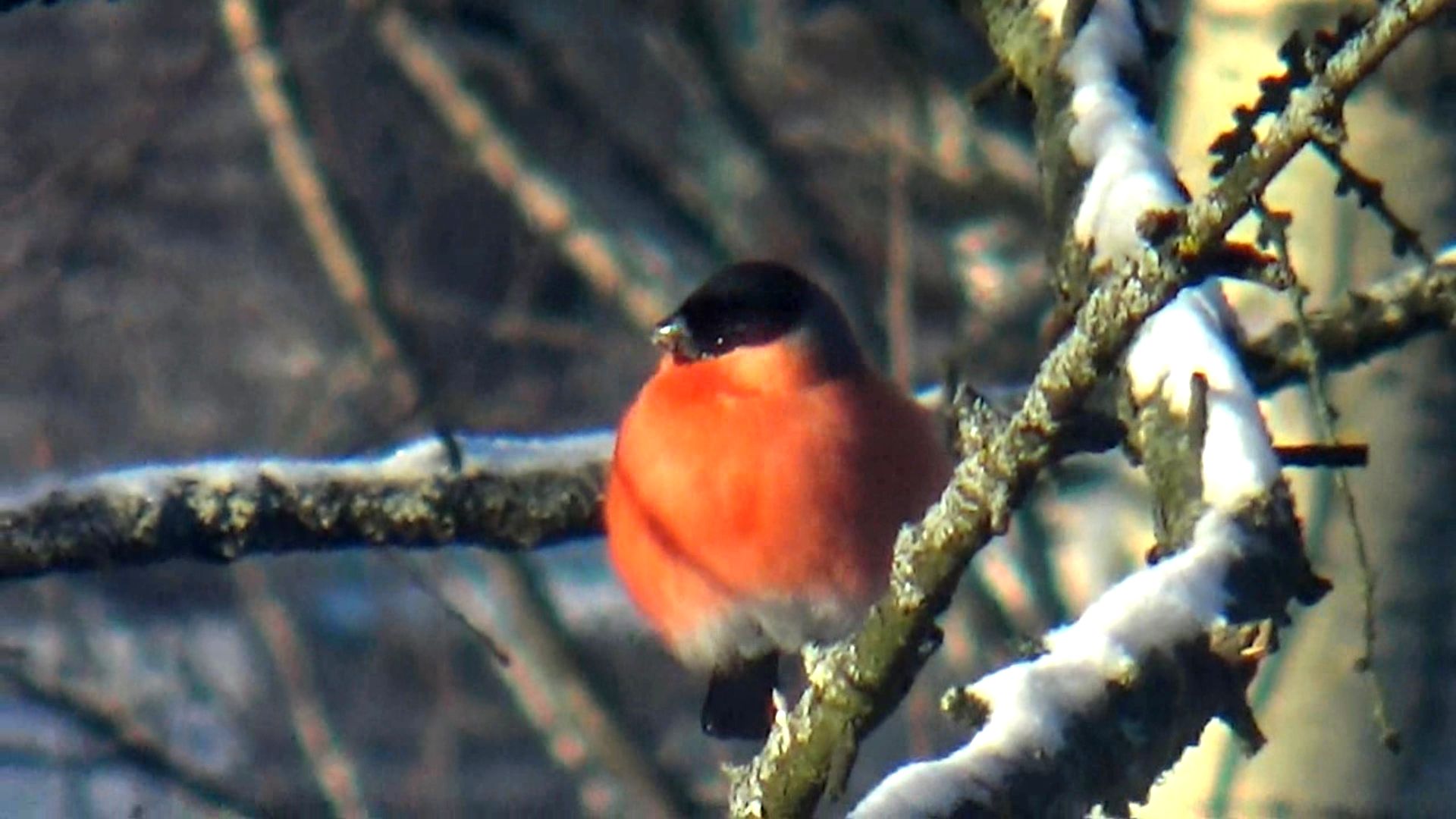 Снегирь и синица в морозный зимний день