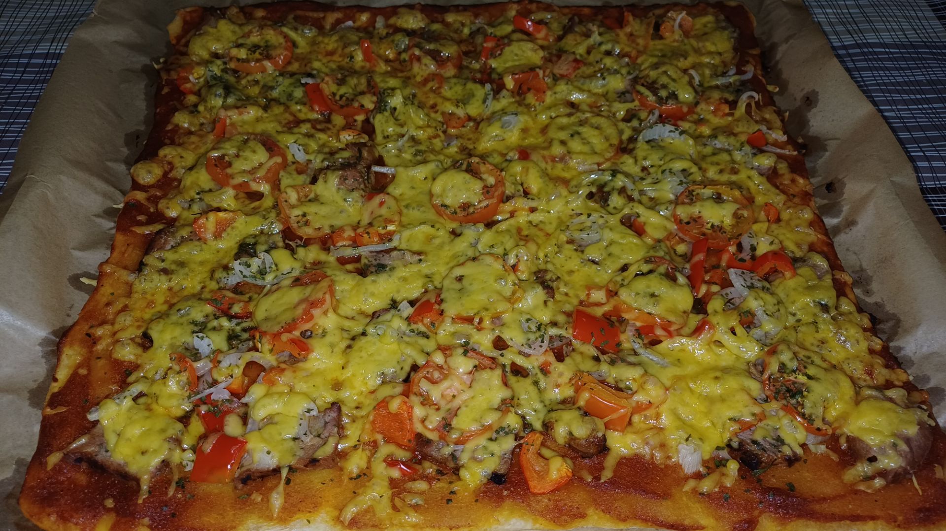 Пицца с сочным свиным шашлыком и свежими овощами. Свиной шашлык. Лук репчатый. Помидоры. Болгарский перец. Томатная паста. Базилик сушеный. Соль по вкусу. Перец острый. Масло растительное. Сыр. Готовим при температуре 200с. 20-30 минут. Приятного всем аппетита. Добро пожаловать на официальный кулинарный канал: Тот самый шашлычок. На моих каналах большое количество хороших и вкусных рецептов. https://rutube.ru/u/thesamekebab/ https://zen.yandex.ru/thesamekebab https://plvideo.ru/channel/@Thesamekebab https://vkvideo.ru/@clubgroupthesamekebab https://vk.com/clubgroupthesamekebab https://t.me/Thesamekebab55 Пожертвовать на добрые дела: https://yoomoney.ru/fundraise/186N1JL3307.250204 До скорых встреч. #тотсамыйшашлычок #тот_самый_шашлычок #thesamekebab