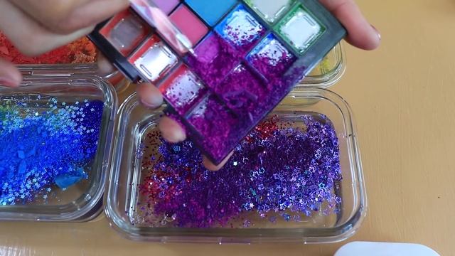 Смешивавние''Радужного'' макияжа и блесток в слайм! Увлекательное видео со слаймом.