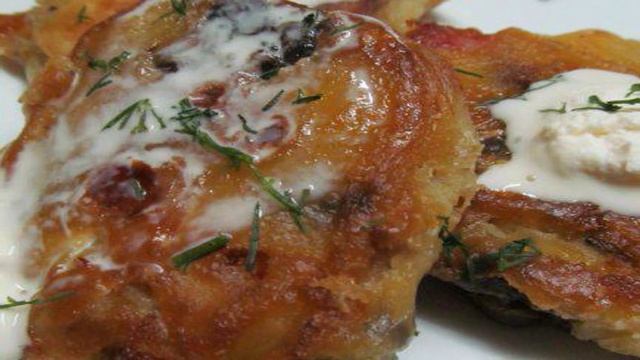 Оладьи с грибами и беконом