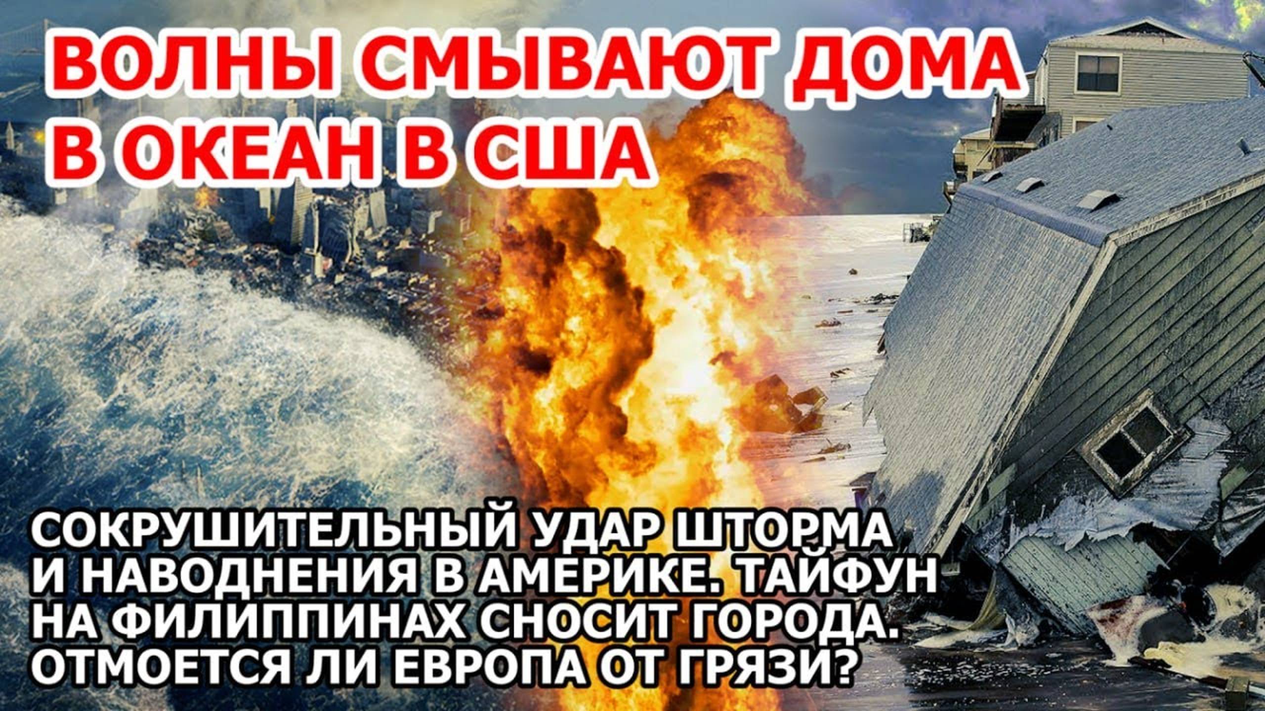 Шторм и волны в США смывают дома в океан Наводнение Америка Испания Тайфун Филиппины Взрыв Пожар