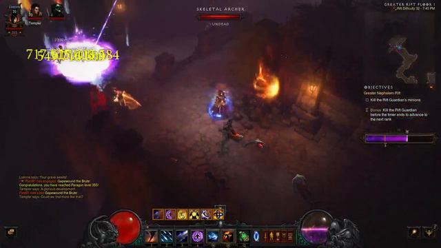 Greater Rift 32, Tal Rasha's set Other Notable items: Corrupted ashbringer weapon Ranslor's Folly bracers Nifur's Boast boots This build melts everything