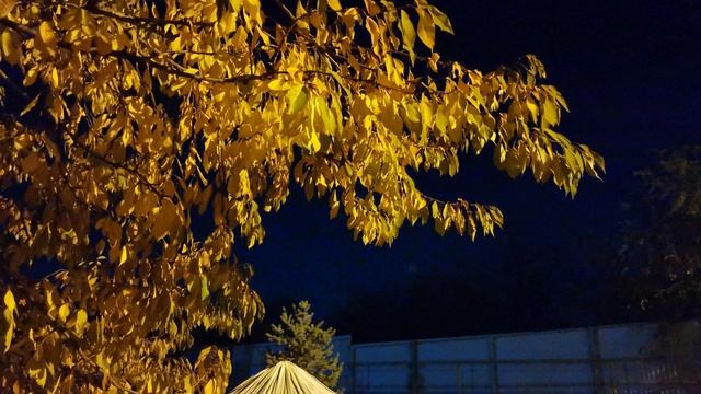 Жёлтые листья, черешня осенью, вечер