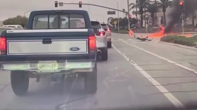 Мотоцикл загорелся при ДТП в Калифорнии
