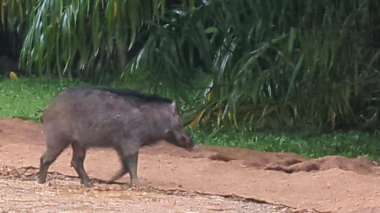 Дикий кабан в Сингапуре борется с геотканью. Рабочие спрятали корешки от Пумбы!