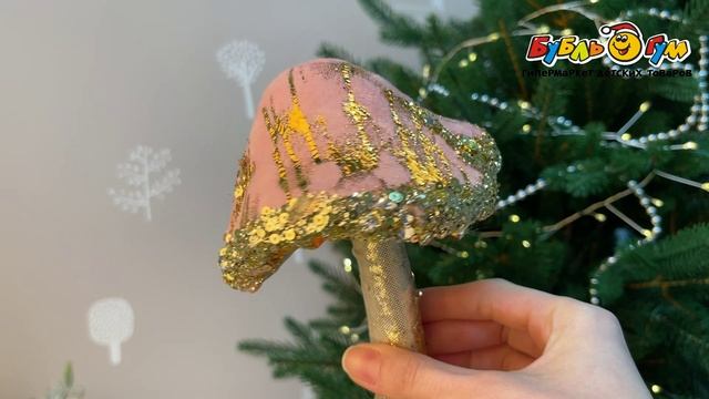 333605 Фигурка декоративная Гриб с пайетками винтажная розовая 21см