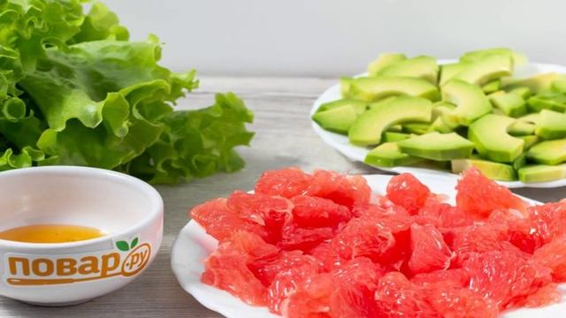 Салат из креветок с грейпфрутом и авокадо