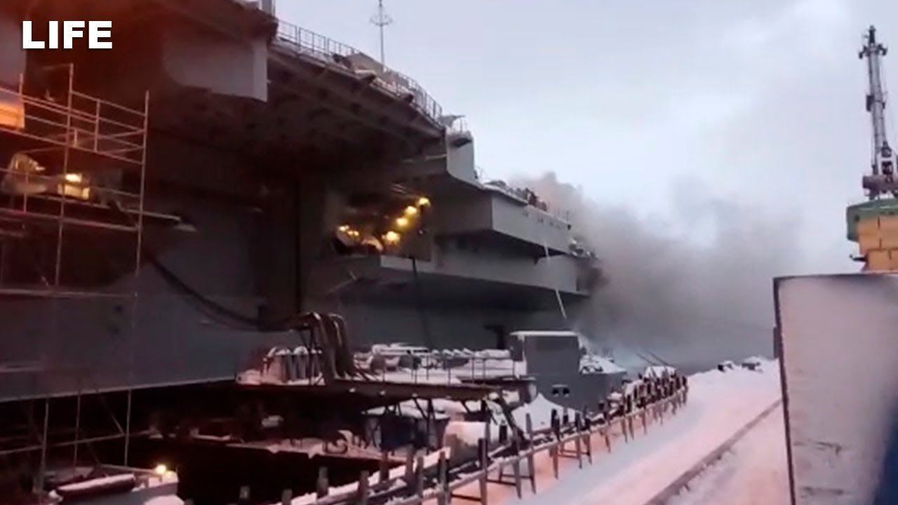 Пожар на крейсере "Адмирал Кузнецов" в Мурманске
