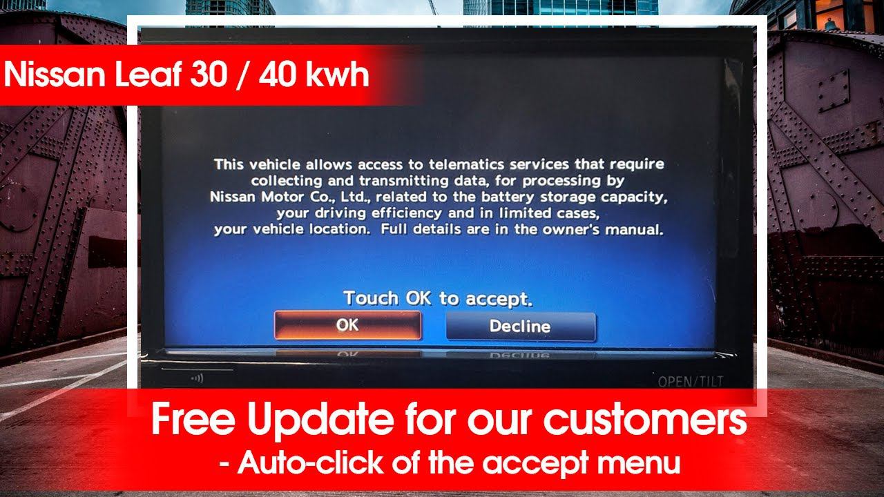 Nissan Leaf 2015+ - free update for our customers, Auto-click of the OK buttons, new Navi maps